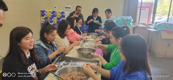 首先是包餃子,機關同事利用午休時間包好餃子,大家分工協作,配合默契,紛紛使出看家本領,剁餡、揉餡、包餃子、上盤……大家表情專注、動作嫻熟,場面充滿了濃濃的溫馨氣氛。