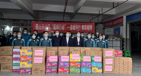 為進一步做好“雙11”期間員工關(guān)愛工作,11月9日,璧山區(qū)分公司領(lǐng)導(dǎo)班子赴郵件處理中心開展關(guān)愛攬投員“暖蜂行動”--溫暖同行,郵你相伴慰問活動,為一線員工送去了方便面、面包、火腿腸等慰問品。總經(jīng)理石剛和工會主席彭平與員工親切交談,了解員工工作情況,聽取員工真實訴求,為大家不懼風(fēng)險、迎難而上的工作態(tài)度點贊。員工們紛紛表示:這幾天雖然工作量很大,確實很辛苦,但公司對我們的關(guān)心讓我們很暖心。