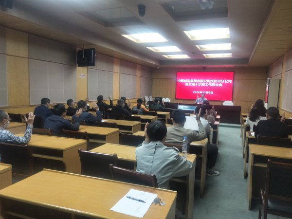 11月8日下午,江西省撫州市分公司召開第三屆十次職工代表大會。會議應到代表59人,因病因事請假 3人,實到代表56 人,符合開會規定人數,市分公司黨委委員、副總經理、工會主席李捷平主持會議。