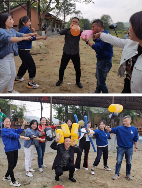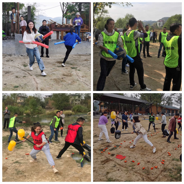 活動在一場場妙趣橫生的趣味小游戲中拉開帷幕。秋高氣爽時節,置身于河流旁的戶外沙灘上,員工們個個興致盎然、躍躍欲試。歡樂的熱身運動之后,各部門工會小組之間的PK正式開啟?!半p龍戲珠”游戲最是考驗團隊合作能力。游戲開始,隊長到圈內用長棒夾起圓球,圍著外圈跑一圈后,交給下一位隊員繼續夾球接力跑。接力賽緊張激烈,有的隊員屢夾屢掉干著急,有的隊員一次成功羨煞旁人,緊張有趣的互動不知不覺加深了隊友們的默契,圍觀的拉拉隊為參賽的隊友吶喊助威,競賽氣氛被不斷推高。
