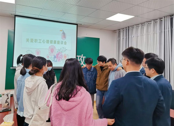 活動現場準備了水果、零食、飲料等食物,營造出輕松舒適的氛圍,新入職職工們暢所欲言,述說自己在工作和生活中遇到的麻煩和壓力,隨后,由優秀職工代表現場交流分享了自己在工作中緩解壓力、對壓力負面情緒的疏導方法,通過PPT介紹心理健康知識。活動最后,開展了心理減壓互動游戲,讓大家感受團隊合作的力量,拉近了職工們之間的距離。