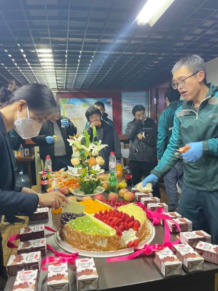 “為公為民保暢通,全員奮進戰高峰!”二十多名投遞員圍在一張堆滿零食、飲料和擺放著一個大蛋糕的桌子前共同舉杯,11月11日20點,走進北京市海淀區魏公村郵政支局攬投部二樓的“職工小家”時,看到這樣一幅火熱的景象。每年的這天,魏公村支局都會利用投遞間隙舉辦一場生日會,為忙碌的投遞員加油鼓勁,也給奮斗的時光增添一絲儀式感。