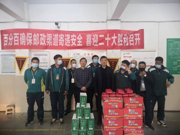 每到一處,慰問組都與堅守崗位的一線職工握手交談,詳細了解職工工作和生活情況,對大家不待揚鞭自奮蹄的敬業精神和舍小家為大家的辛勤付出表達感謝,將精心采購的方便面、牛奶、防疫包、保溫飯盒等慰問品送到一線職工手中,鼓勵大家繼續卯足干勁,奮勇拼搏,為接下來的“雙12”、“大收官”打一系列漂亮的接力戰,同時囑托大家嚴格遵守服務質量,為廣大用戶能享受到高效、快捷、便利的郵政服務作出更大的貢獻。