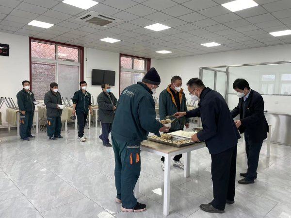 受疫情影響,11月23日起順義區大部分小區、村鎮都實行了臨時管控措施,很多投遞員都被臨時管控在家,給旺季高峰期間投遞工作帶來了巨大壓力。區分公司工會主席馬海利一早就聯系食堂要在上午投遞員出班以前把飯菜準備好,并與區分公司分管副總經理董宗悅一同為投遞員們盛菜、盛飯,同時還提醒即將要出班的投遞員們一定要做好自身防護,對大家特殊時期依然堅守崗位、不辭辛苦的工作態度表示感謝。