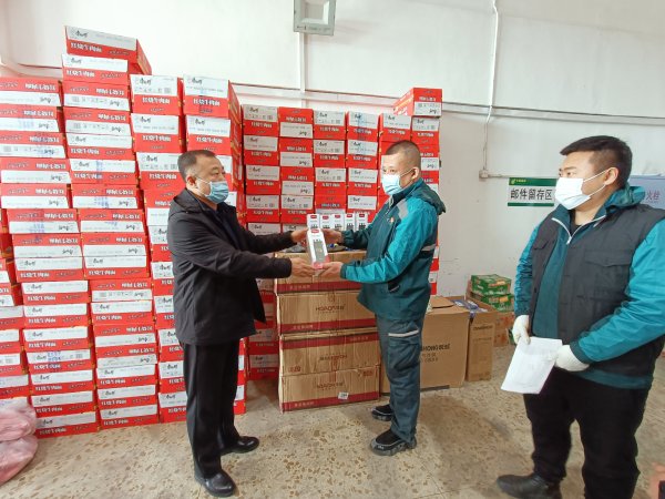 慰問過程中時洪軍主席為投遞員們送上了省郵政工會為他們準備的防寒馬甲,同時為保證大家在加班加點工作期間能夠吃上熱飯喝上熱水,提前采購了保溫杯、方便面、火腿腸、榨菜、牛肉醬、面包、防滑手套等慰問品。