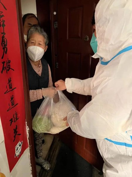 經過3天緊張的備貨、運輸,首批郵政蔬菜包及時送抵社區,王娟娟早就帶領由她與支行理財經理于萍、綜合柜員梅雪盛組成物資保障小組在社區等候,準備協助社區進行裝卸工作。在得知送菜力量不足時,支行的同志們更是穿上防護服,跟工作人員一起挨家挨戶將蔬菜包送到居民手中,切實解決了居民們居家買菜難的困難。