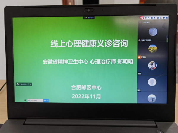 為持續關愛職工心理健康,緩解疫情等特殊時期的心理壓力,11月25日下午,合肥郵區中心局工會舉辦線上心理健康義診咨詢活動,邀請安徽省精神衛生中心心理治療師圍繞疫情時期心理健康呵護、工作壓力緩解和睡眠障礙克服等進行了義診及互動交流。合肥郵區中心有60余位職工參與了義診咨詢活動。