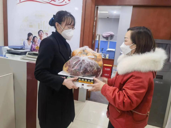 “伙伴們辛苦了,疫情期間大家一定注意安全!多喝熱水,多補充維C……”。12月16日,李市支局工會小組長慕琳琳帶著新鮮采買的各式水果和口罩等防疫物資送到網點,對員工親切慰問。