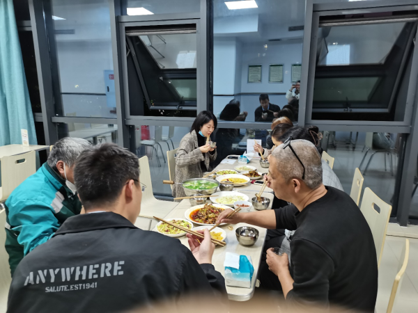 攬投員張靜高興地表示:"歸班回來已經七八點了,天已經黑了,外面所有的餐館因為疫情原因也停業了,但是分公司關心關愛我們,現在每天回來還能吃上熱騰騰的飯菜,讓我們真切感受到了家的溫暖,干活更有勁了。”