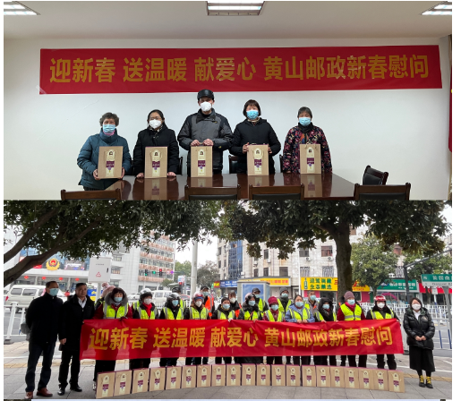 2023年1月17日,在新春佳節即將到來之際,為切實關愛社區高齡空巢老人和困難群眾及一線環衛工人,黃山郵政工會聯合上塘社區、屯溪區環境衛生管理中心開展了“迎新春 送溫暖 獻愛心”新春慰問活動,為群眾送去生活用品及新春祝福。