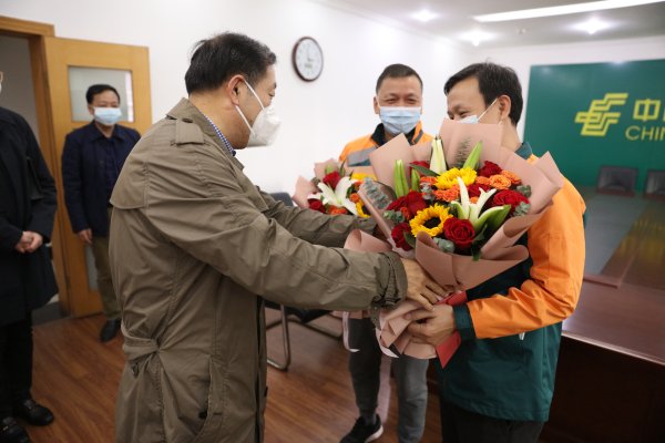 “大家辛苦了!我代表省分公司黨委來看望大家,給各位拜個早年!”1月10日下午,江西省分公司黨委委員、副總經理、工會主席戴書華一行來到南昌郵區中心,走訪慰問了江西省勞動模范王金珍和江西省五一勞動獎章獲得者李鵬,為他們送上了慰問金和鮮花,傳遞了省分公司黨委和工會的關懷和溫暖。省分公司企業發展與科技部總經理龍衛林、黨委黨建工作部主任鄔龍玉陪同慰問。