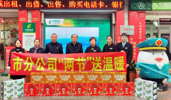 在榮昌富安郵政所,劉力詳細的了解網(wǎng)點人員分工、廳堂氛圍打造以及“開門紅”業(yè)務發(fā)展情況,并為大家送上新春祝福和慰問品。