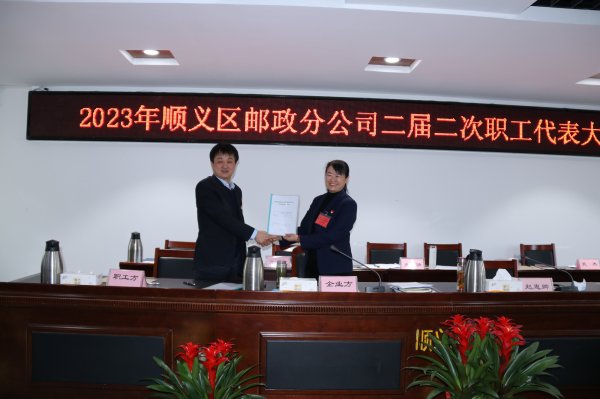 中國郵政集團有限公司北京市順義區分公司二屆二次職工代表大會于2023年2月1日召開,大會應到正式代表45名,實到44名。大會聽取并審議了賈小燕總經理所做的題為《貫徹黨的二十大精神 聚焦“1355”工程 全力推進順義郵政高質量發展》的工作報告;審議通過了《順義區分公司2022年為職工辦實事項目完成情況和2023年為職工辦實事項目立項情況的報告》《工資集體協商專項協議的說明》,現場簽訂了順義區分公司工資集體協商專項協議;聽取了順義區分公司2022年《職工福利費、業務招待費使用情況的報告》《黨風廉政建設基本情況通報》和《人工成本、教育培訓經費使用情況的報告》。