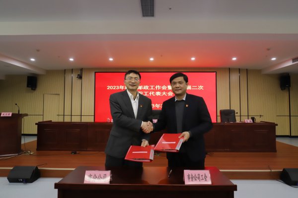 會議期間,市分公司總經理王健與市郵政工會主席肖翔簽訂了《贛州市分公司2023年為員工辦實事承諾書》、《贛州市分公司工資集體協商專項協議》。(江西省郵政工會)