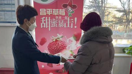 開幕當天,昌平區域內及天通苑、回龍觀等20個郵政網點的營業員全部佩戴了“昌平草莓”宣傳口罩,并向前來辦理業務的客戶免費贈送草莓口罩。