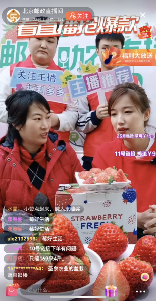 為確保此次直播效果,昌平區分公司鄉村振興部提早甄選本地39款特色農品上線直播間商城,同時邀請昌平職業學校電商專業師生和商家代表與郵政主播一起向粉絲朋友們展示昌平草莓、蜂蜜、大缸醬菜、小湯山特菜、蘑菇、雞蛋等產品,昌平區環境監測站的草莓專家也在直播間出鏡,介紹“昌平草莓”作為農產品地理標志的相關知識。直播期間,觀看人數累計突破 1.2萬人次,銷售1345單,有效助力“昌平草莓”品牌知名度提升。