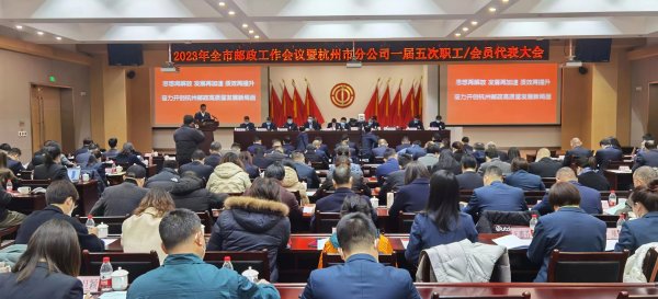 日前,2023年全市郵政工作會議暨中國郵政集團有限公司杭州市分公司一屆五次職工(會員)代表大會召開。本次會議采用現場 視頻的形式召開,各縣(市、區)分公司、郵區中心代表在本地以電視電話會議形式參會。