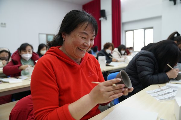舉辦“雕刻定窯瓷器,品鑒非遺文化”定窯手作體驗活動——描花型、刻邊線、剔刻、落款......一系列看似復雜的操作,在定窯非遺傳承匠人的指導下有序完成,發行女工們化身為手工大師,大膽創意、自由嘗試,在與泥土的對話中感受匠心的療愈力量,一件屬于自己的定窯器物在精心的雕刻下誕生。“今天是我第一次體驗瓷器制作,跟著定窯非遺傳承人一起,學習歷史,手把手教我獨特的雕刻技藝,我感覺非常開心!很期待屬于我自己的作品”參加活動的女工們臉上都露出了由衷的笑容。