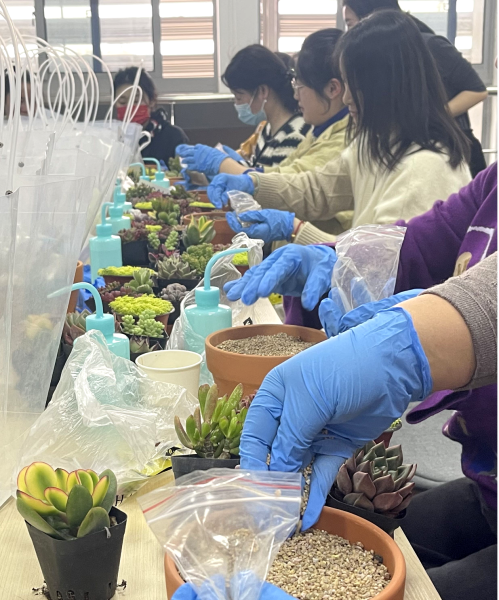 活動在輕松愉快的氛圍中拉開帷幕,花藝師為大家講授了多肉品種、造型選配、填土日照等小知識。在DIY環節,女職工們一個個變身巧手花匠,大家認真選材,通過新穎的構思、巧妙的搭配,一盆盆生機盎然的多肉植物DIY作品逐漸完工,春天的勃勃生機洋溢在現場每一位女職工的周圍。