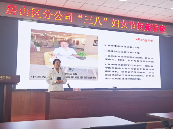 為進一步增強企業女職工健康保健意識,增強養生觀念,3月7日上午房山區分公司工會聯合愛康體檢舉辦了以“中醫春季養生”為主題的女性健康保健知講座。