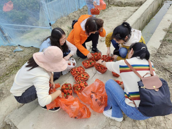 動結合郵政惠農活動,特意選在南陵縣黃墓村黨組織領辦合作社的草莓大棚舉行。3月8日下午1點,郵政巾幗們準時出發,踏上快樂采摘之旅。一踏入草莓大棚,清新的草莓果香撲鼻而來,一派清新的田園氣息,放眼望去,鮮紅欲滴的草莓果實在一壟壟碧綠的草莓秧中若隱若現,紅綠交映,一片生機勃勃。大家手提小果籃,沿著整齊的草莓田,化身快樂的小果農,一邊采摘品嘗,一邊相互交流,氣氛輕松活潑,體驗著采摘草莓、品嘗鮮果的樂趣,現場快樂與熱情四溢。經過一個多小時的采摘后,大家都有了豐碩的成果,每個人的臉上充滿著幸福的笑容和活力。