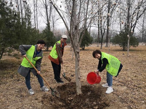 活動現場,園林工作人員為大家介紹了園林里種植的情況,講解了森林養護常識,隨后分成3組領取裝備開展養護工作。職工們揮鍬松土、打水灌溉,相互協作,現場一派緊張有序的勞動景象。雖然今天的天氣處于霧霾狀態,空氣質量不高,但是職工們個個熱情洋溢、干勁十足,最終實現撫育綠地200余平。