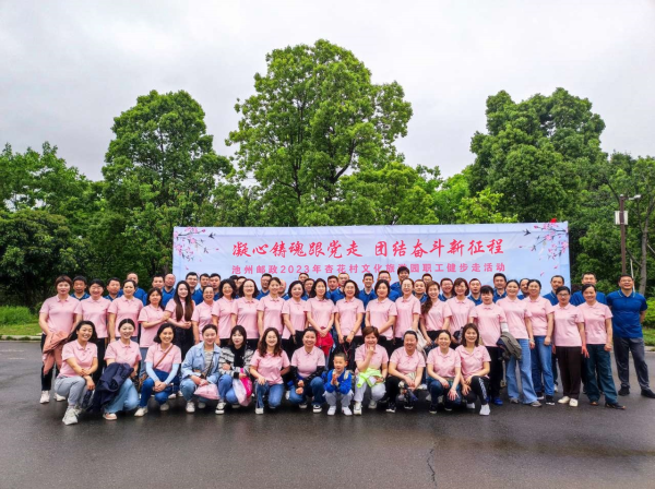 4月22日上午,池州郵政工會組織80余名職工在美麗的杏花村文化旅游區開展健步走活動。