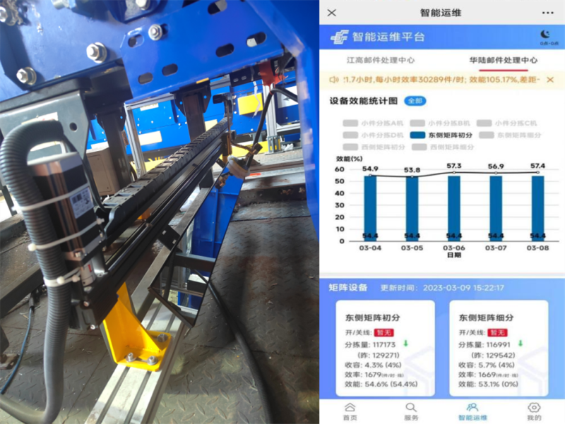 在日常管理過程中,處理中心值班人員利用SCADA系統和智能運維平臺發現設備效能指標異常,及時溝通反饋。一線接發人員通過信息系統查看在途和進局車輛的主要流量流向、郵件規格、集包情況、貴品等信息,合理安排卸車垛口。汪磊提出通過分析無物理格口、無信息、未半圈落格郵件主要路向,定期反饋給業務部門完善分揀方案、現場管控等相關建議,實現了業技深度融合、齊抓共管的良性循環,設備開機時間時長平均壓縮4.25小時,減少了設備磨損,件均電費下降20%。