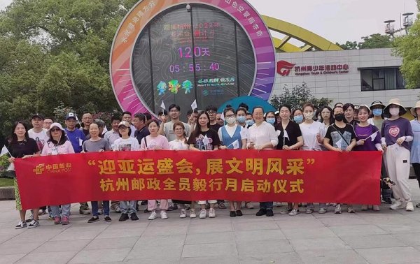 5月26日下午兩點,為期一個月的“迎亞運盛會、展文明風采”杭州郵政全員毅行月活動啟動儀式在少年宮旗桿下舉行,來自杭州郵政分公司的22個基層分工會的60多位員工代表參加了啟動儀式。