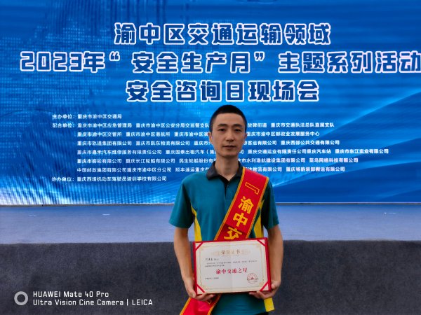 6月16日,在渝中區交通局舉辦的2023年度“渝中交通群星閃耀時”評先活動中,渝中郵政員工、2021年“重慶市第六屆勞動模范”,“重慶五一勞動獎章”獲得者何壽全再獲殊榮,被授予“渝中交通之星”榮譽稱號。