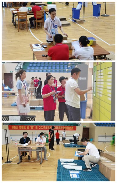 7月5日,由杭州市總工會(huì)牽頭,與杭州市人力資源和社會(huì)保障局、杭州市郵政管理局聯(lián)合主辦,杭州市經(jīng)信工會(huì)、杭州市職業(yè)能力建設(shè)指導(dǎo)服務(wù)中心、杭州市快遞行業(yè)工會(huì)聯(lián)合會(huì)、杭州市快遞行業(yè)協(xié)會(huì)承辦;杭州技師學(xué)院、浙江郵電職業(yè)技術(shù)學(xué)院協(xié)辦的“迎亞運(yùn) 競技能 展“蜂”采”2023年杭州市快遞員職業(yè)技能競賽在杭州技師學(xué)院成功舉行,經(jīng)過理論知識(shí)和操作技能考核,裁判員給出綜合評分,杭州郵政胡邵獲得一等獎(jiǎng) ,陳增峰 、樓鎧鍇獲得二等獎(jiǎng),蕭山郵政張魯杰 、 余杭郵政萬勤豐 、何濤獲得三等獎(jiǎng)。省、市郵管局及杭州市總工會(huì)、杭州市經(jīng)信工會(huì)、杭州技師學(xué)院領(lǐng)導(dǎo)為獲獎(jiǎng)選手頒獎(jiǎng)。