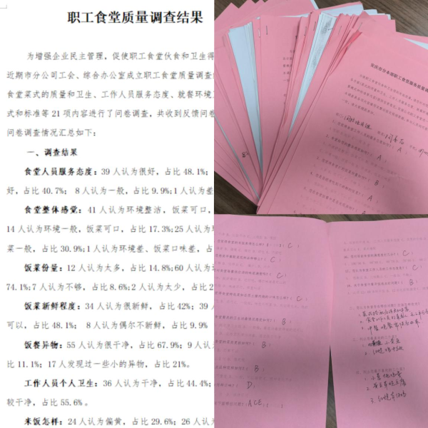 為進一步增強企業民主管理,提高職工食堂餐飲質量和服務水平,全面了解職工對食堂菜品質量、服務質量、用餐環境等膳食服務工作的滿意度,近期,安慶市郵政工會開展了食堂滿意度問卷調查活動。