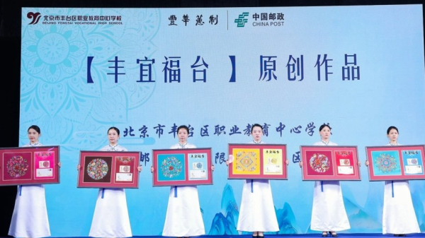 “2023年‘豐宜福臺’原創禮物共6款,每款都由一件京繡作品制作而成,包括明信片、信封等。”儀式上,在“倍增發展”“伙伴行動”落地項目發布環節,豐臺郵政與豐臺職業教育中心學校聯合開發設計的“豐宜福臺”禮物原創品牌正式揭牌發布。本套產品包括6件作品,按照產品設計創意把豐臺特有“花文化”和郵政的“郵文化”及“非遺文化”相結合,寓意深刻,內容豐富。