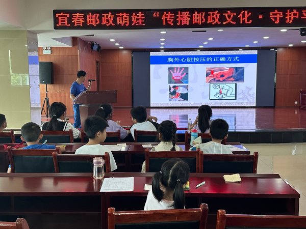 二是在“安全知識、‘郵’你‘郵’我”活動環節:“郵”寶寶們學習了心肺復蘇、氣道梗阻、溺水自救與救人、繩結運用等方面安全知識。觀看了安全警示教育片,并體驗繩結逃生。