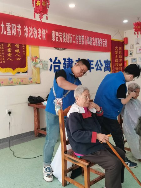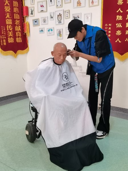 為了讓養老院的老人們足不出戶就能享受到專業的理發服務,康智勞模創新工作室成員主動對接社會資源,邀請專業的美發師到養老院為老人提供現場理發。服務活動現場,老人們在勞模志愿服務隊志愿者的引導下,在養老院大廳座位上有序排隊等候。三位理發師動作嫻熟、細心認真,與每一位理發的老人耐心交流,詢問老人心中理想的發型,用精湛的理發技術,細心地為老人修剪出滿意的發型。剪完后,老人們看到自己清爽利落的發型,滿意的笑容溢于言表。