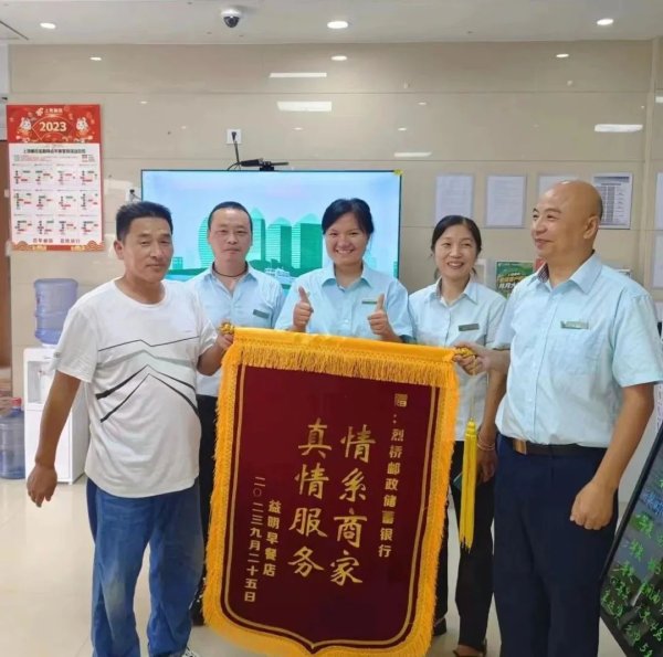 近日,江西省弋陽縣分公司烈橋郵政所隔壁早餐店的巫益民老板專程給網點送來了一面錦旗,口中連聲感謝。