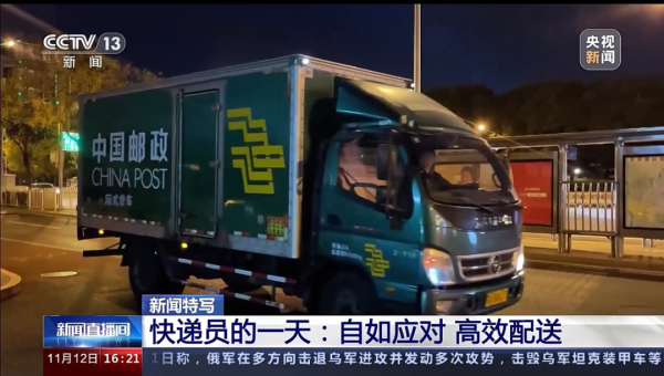 11月12日,央視《新聞直播間》欄目播出新聞特寫——《快遞員的一天: 自如應對 高效配送》,聚焦北京郵政西城區(qū)西單營業(yè)部攬投員王天來。