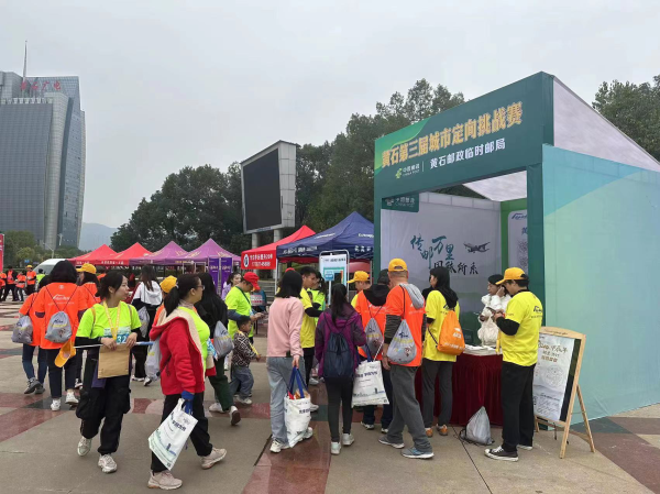 11月11日,黃石市第三屆城市定向挑戰賽開賽。上午8點,黃石市人民廣場彩旗飄揚,身穿紅、黃、綠、粉四色T恤的2000余名運動員在此匯聚,排列方陣,等待出發。黃石市郵政分公司在廣場設置了臨時郵局,并派出7支代表隊參加此次活動。