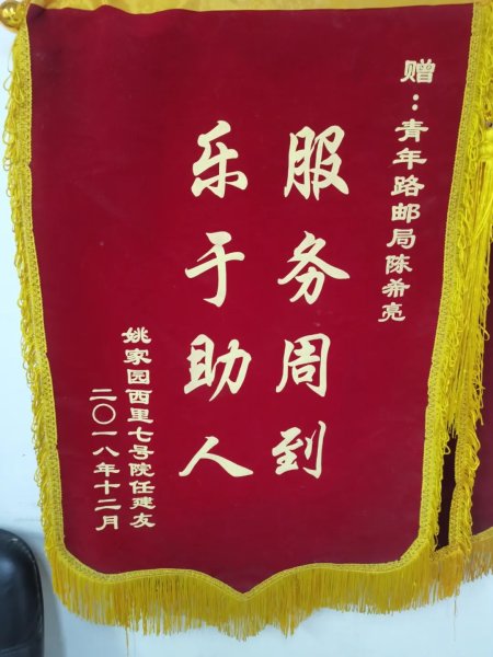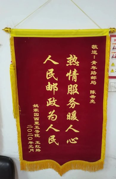“還有一次,有一封來自國外的信件,信件收件地址只寫了姚家園西里5號院1號樓,無聯系電話。我挨家挨戶去詢問,終于找到王先生。看到用戶拿到信時高興的表情,我感覺所有辛苦都值得。用戶王先生激動的拉著我的手說:太謝謝你了,這封信對我很重要,沒寫電話我以為收不到了,你們郵政投遞員真的很負責任。王先生也送過一面錦旗到投遞部,表揚我細致、周到、耐心的服務。”陳希亮說。