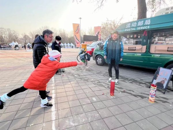 集齊紀念戳不僅可兌換運動包,還可以參加投壺活動,投中5支以上還可獲得北京冬奧會系列郵票、明信片作為留念。與此同時,在現場還設有“郵政流動車”,提供郵寄信件、銷售郵品和文創產品等服務。 (北京郵政工會)
