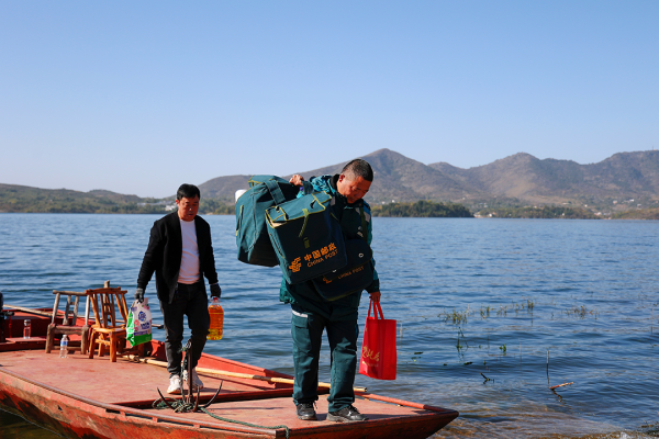 在庫區土生土長的石新國,深知這里的鄉親離不開郵路。1999年,他接手了這條郵路,成為孤寂的庫區郵路中唯一的郵遞員,在這條山水交織的郵路上一走就是24年。他將丹江口庫區人民視為親人,用忠誠和熱愛、責任和擔當,在山區水路架起一座為民服務的連心橋。