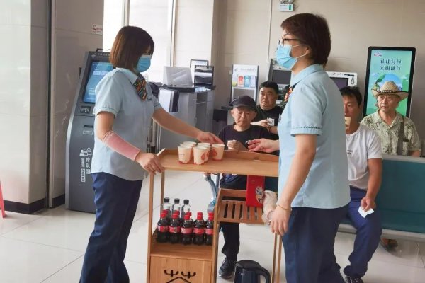 為了讓等待辦理業務的客戶不再感覺枯燥,該網點經常組織客戶在廳堂開展有獎問答、金融知識沙龍、手指按摩操等活動,并不間斷提供熱茶、熱水、飲料、零食等,從細節入手提升服務體驗。