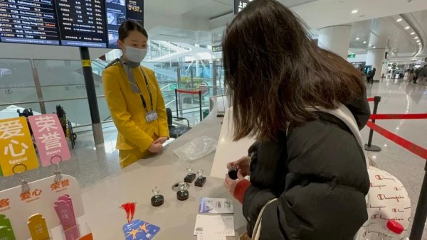 此外,柜臺(tái)還提供大興機(jī)場(chǎng)專屬郵戳印章服務(wù),除了留念珍藏,也可將明信片寄給遠(yuǎn)方的朋友和親人。該專屬明信片不僅具有傳統(tǒng)意義上表達(dá)情感的功能,還富有觀賞性和收藏價(jià)值。