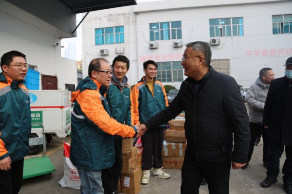 12月28日下午,湖州市總工會黨組書記、常務副主席田立新,率湖州市總工會權保部部長孔晨、湖州市直屬基層工會主席戴大喜一行,代表市委市政府、市總工會前來慰問奮戰在一線的郵政快遞員工,田書記握著快遞小哥的手,親切地詢問了解他們工作與生活的情況,囑咐他們注意安全、勞逸結合,感謝他們及家屬的辛勤付出,為湖州經濟發展貢獻力量。同時,還專門帶來了慰問品,親手送到員工手上并合影。