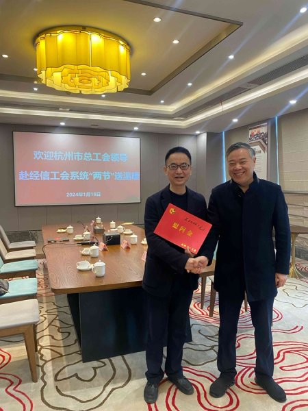 1月18日,杭州市總工會副主席聞國平一行到杭州郵政開展經信工會系統“兩節”送溫暖慰問活動并座談,杭州市分公司副總經理、工會主席王健濱陪同。