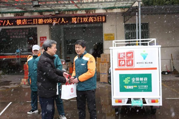 在春節到來之際,衢州市總工會揭政東、楊川丹副主席在衢州市郵政工會主席毛亨森的陪同下分別至城北投遞班、城北攬投部及快包部進行了慰問,給在戶外辛苦勞動的投遞員們送上了暖心禮包,并與他們親切交談,囑咐雨雪天氣要注意行車安全,注意保暖,使我們投遞員在這個寒冷的季節感受到來自工會組織的融融暖意。投遞員們紛紛表示今后會繼續努力工作,為社會多做貢獻,為企業爭光。(浙江郵政工會)