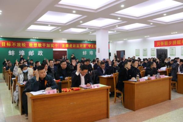 1月29日,蚌埠市郵政分公司召開(kāi)工作會(huì)議暨二屆五次職工代表(會(huì)員代表)大會(huì)。會(huì)議聽(tīng)取了市分公司黨委書(shū)記、總經(jīng)理許峰《守正創(chuàng)新 敢做善為 應(yīng)需盡能 見(jiàn)行見(jiàn)效 推動(dòng)蚌埠郵政改革發(fā)展再上新臺(tái)階》的行政工作報(bào)告和工會(huì)主席鄭啟平《聚焦發(fā)展 勇攀高峰 團(tuán)結(jié)動(dòng)員廣大職工 為蚌埠郵政高質(zhì)量發(fā)展貢獻(xiàn)力量》的工會(huì)工作報(bào)告,以及二屆五次職代會(huì)籌備情況,代表資格審查情況,二屆四次職代會(huì)代表提案落實(shí)情況,社會(huì)保險(xiǎn)繳納、福利費(fèi)使用、財(cái)務(wù)預(yù)決算、集體合同履行情況等報(bào)告。 會(huì)議期間,對(duì)市分公司先進(jìn)集體、班組、先進(jìn)個(gè)人和優(yōu)秀部門(mén)工會(huì)進(jìn)行表彰;對(duì)領(lǐng)導(dǎo)干部進(jìn)行民主測(cè)評(píng);職工代表認(rèn)真審議并積極開(kāi)展討論,大家踴躍發(fā)言,建言獻(xiàn)策,對(duì)落實(shí)好大會(huì)確定的工作任務(wù),提出了寶貴的意見(jiàn)和建議;最后,表決通過(guò)各類(lèi)報(bào)告、大會(huì)決議和《2024年績(jī)效考核辦法》。 大會(huì)號(hào)召,全市郵政干部職工,要在市分公司黨委的正確領(lǐng)導(dǎo)下,守正創(chuàng)新、敢做善為、應(yīng)需盡能、見(jiàn)行見(jiàn)效,推動(dòng)全市郵政工作在新的一年呈現(xiàn)全員奮斗奮進(jìn)、全程提質(zhì)提效、全面爭(zhēng)先爭(zhēng)優(yōu)、全域出新出彩的新局面,推進(jìn)蚌埠郵政改革發(fā)展再上新臺(tái)階,以?xún)?yōu)異成績(jī)迎接中華人民共和國(guó)成立七十五周年。