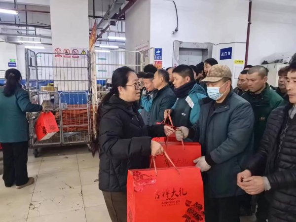 春節將至,年味漸濃。2024年2月1日普陀區分公司領導班子走訪生產一線,開展迎新春送溫暖慰問員工工作,為員工送上新春大禮包慰問品,把深切的關心及新年美好祝福帶給普陀區分公司全體員工。普陀區分公司黨委副書記李穎,工會主席馮萍,紀委書記俞曉燕,副總經理胡斌,普陀區寄遞事業部副總經理竺君毅、周峻竑,分六路前往各支局、營業部、商務遞、大宗處理點等單位進行慰問。領導們細心察看工作生產場地環境,安全防護用品設施,關心投遞員工近期工作情況,關心春節回家過年的員工車票行程是否安排好,送上新春祝福。