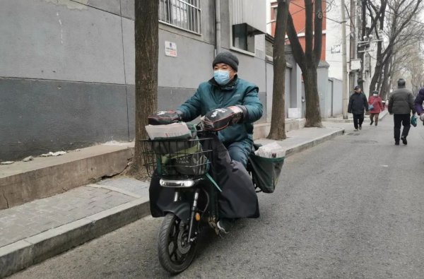 上午9點45分,國光柱來到了南營房一處老居民區,這里的樓房陳舊,道路曲折。他輕車熟路地把車停到一棟樓門前,快速地將分好的報紙和信件拿在手里。由于這里的居民年紀較大,國光柱一戶一戶上門投遞。他的動作雖然凍得有些僵硬,但依然堅定有力。“光柱,過年好啊!”街坊四鄰看到他都露出親切的笑容,并給他送上了新春的祝福。