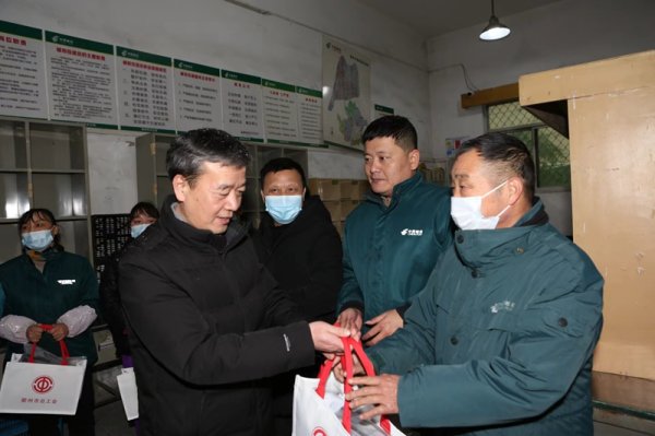 在春節到來之際,衢州市總工會揭政東、楊川丹副主席在衢州市郵政工會主席毛亨森的陪同下分別至城北投遞班、城北攬投部及快包部進行了慰問,給在戶外辛苦勞動的投遞員們送上了暖心禮包,并與他們親切交談,囑咐雨雪天氣要注意行車安全,注意保暖,使投遞員在這個寒冷的季節感受到來自工會組織的融融暖意。投遞員們紛紛表示今后會繼續努力工作,為社會多做貢獻,為企業爭光。(浙江郵政工會)